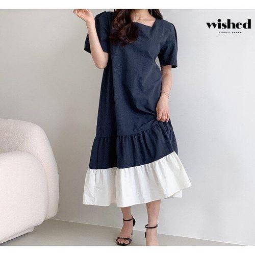 [위시드]프릴 배색 스퀘어넥 캉캉 롱 원피스 (WIBBOP029)