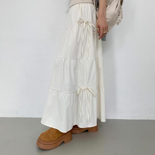 [미라클세븐]여자 키치무드 리본 스트랩 캉캉 밴딩 롱 스커트