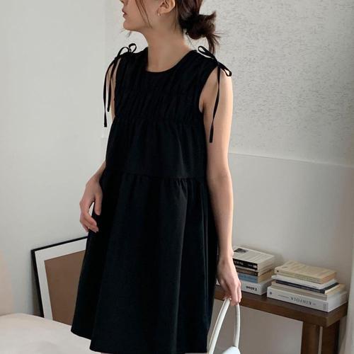 [다잇템]여자 리본 스모킹 잔주름 캉캉미니 원피스_4