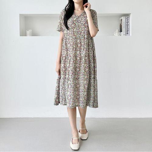 이브바바 여성 여름 인견 반팔 롱 캉캉원피스 중년 엄마옷