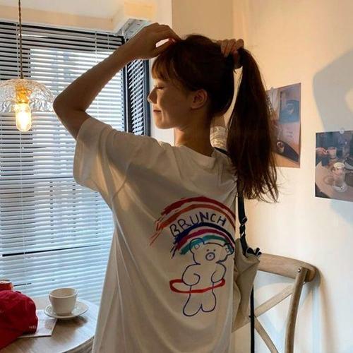 [에이치플러스몰]여성 루즈핏 캐릭터 프린팅 여름 반소매 티셔츠