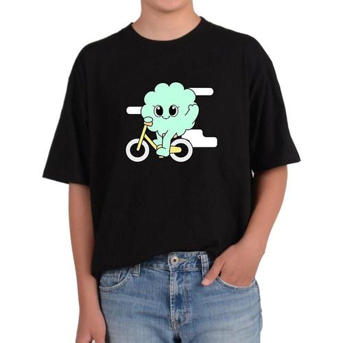 길단 반팔 USA핏 자전거 구름캐릭터 솜사탕캐릭터 계속 패달을그림 WFKOK0I