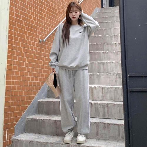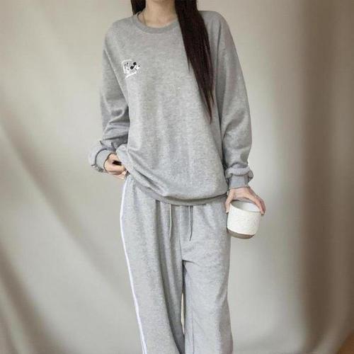 [신상오픈런]여성 캐주얼 면혼합 캐릭터 맨투맨과 조거팬츠 세트