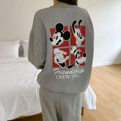 [옷자락] 여자 캐주얼 면혼방 캐릭터 맨투맨 조거팬츠 세트