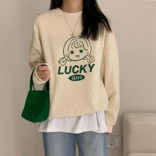 [유야]여성 캐주얼 캐릭터 레터링 맨투맨 티셔츠 -FTS0911- 봄 가을