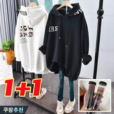 (No.1 추천)(+선물) 빅사이즈 1+1 여성 캐릭터 프린트 기모 후드티 가을 겨울 블랙 화이트 핑크 맨투맨 여자 후드 티셔츠 2종 세트 AW-8920