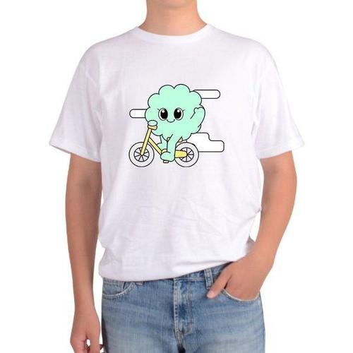 [에이치플러스몰]길단 반팔 USA핏 자전거 구름캐릭터 솜사탕캐릭터 계속 패달을그림 다양한색상 전사이즈