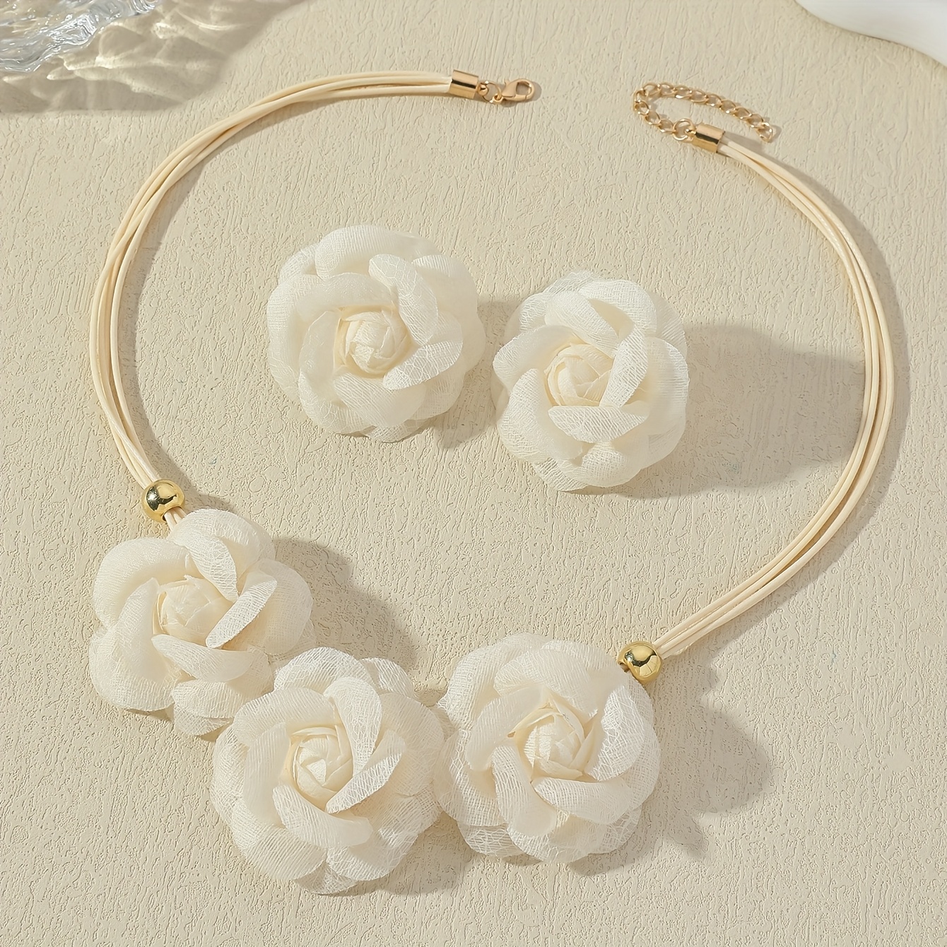 TEMU 3개 세트의 달콤하고 우아한 핸드메이드 메시 장미 귀걸이 및 목걸이, 여름 패션 다용도 프렌치 레트로 플로럴 세트, 연인, 어머니 및 친구를 위한 고급스러운 선물, 여성 데일리 댄스 파티 연회 착용, 발렌타인데이에 적합