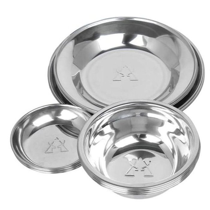 카즈미 캠핑 식기 그릇 접시 식기세트 15p 스텐접시 스테인레스접시 캠핑접시 요리접시 휴대용접시 원형접