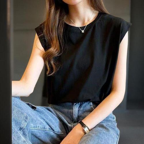 [신상오픈런]여성용 화이트 블랙 오버핏 민소매 티셔츠 캡소매