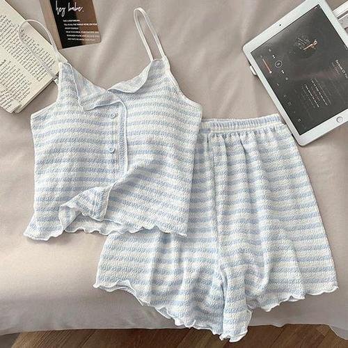 [셀러허브_여성트랜드패션]ONM 홈웨어 캡내장 스트라이프 파자마 세트