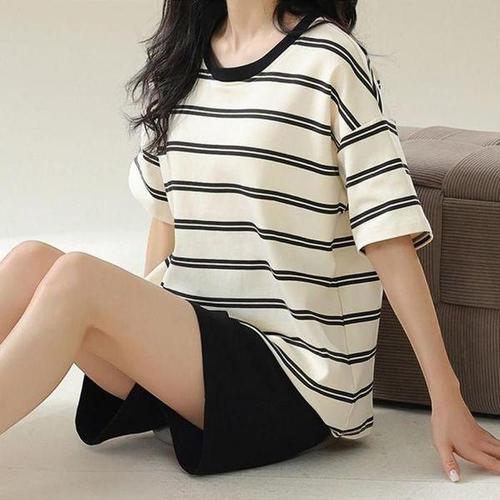 [셀러허브_여성트랜드패션]티 티셔츠 내장 잠옷 스판 홈웨어 모달 캡 노브라