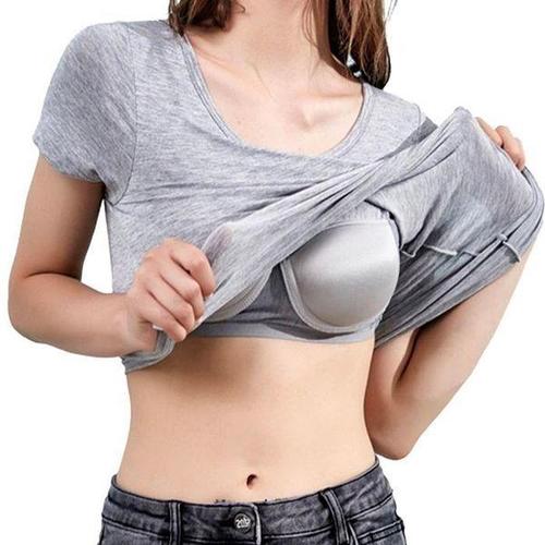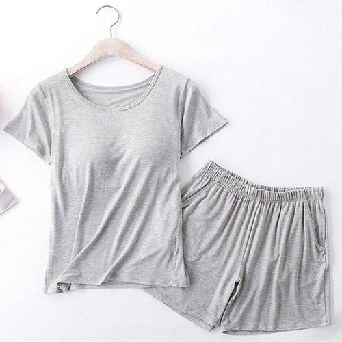 노브라 티셔츠 내장 캡 모달 스판 티 잠옷 홈웨어