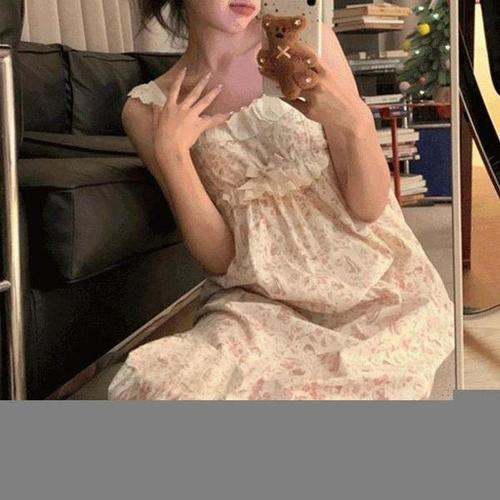 [셀러허브_여성트랜드패션]ONM 캡내장 모네 파자마원피스 봄 홈웨어 잠옷 파자마