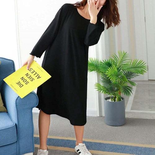 [모노무드]모노무드 여성 캡내장 라운드넥 편안한 긴팔 원피스 홈웨어