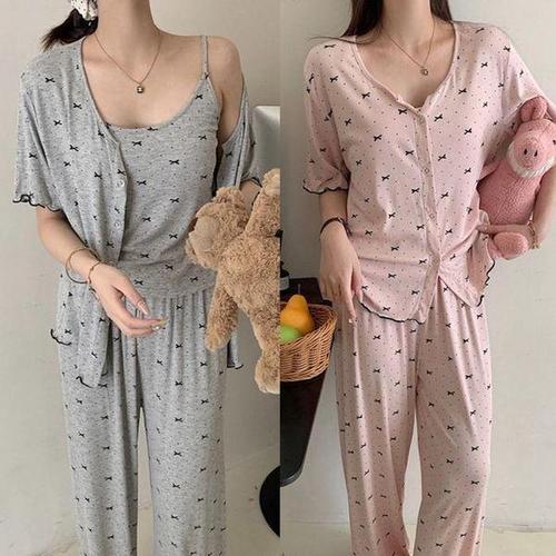 [셀러허브_여성트랜드패션]ONM 홈웨어 캡내장 리본 3피스 파자마 세트