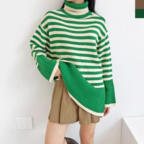 (스타일하우스) 니트티 스웨터 티셔츠 1082 CAT 오버핏 단가라폴라 니트 여자 여성 폴라티 폴라 단가라