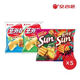 오리온 포카칩 66g 5개+어니언 66g 5개+썬 핫스파이시 80g 5개+갈릭바게트 80g 5개