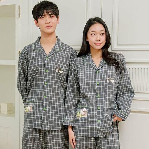 [알콩단잠]커플룩 체크무늬 봄가을 순면잠옷 긴소매 빅사이즈 홈웨어 실내복