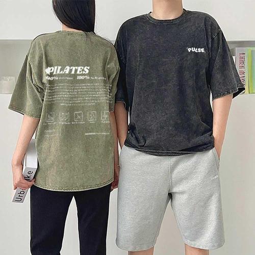 커플룩 빅사이즈 레터링 피그먼트 루즈핏 티셔츠 WFK5UDK
