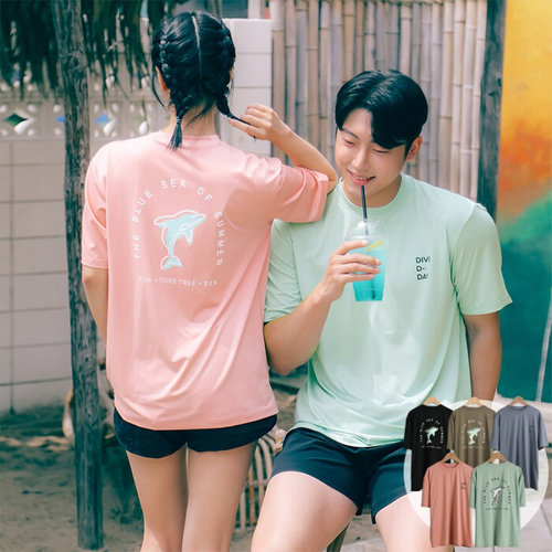 비치팜 / 돌핀 커플 반팔 래쉬가드 남여공용 상의