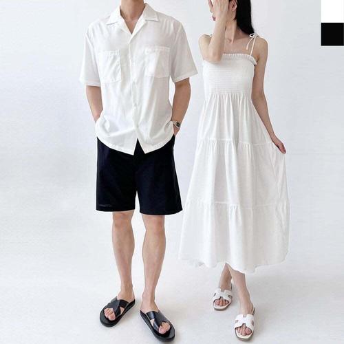 휘잇 스모크 밴딩 커플 시밀러룩 휴양지 바캉스 원피스