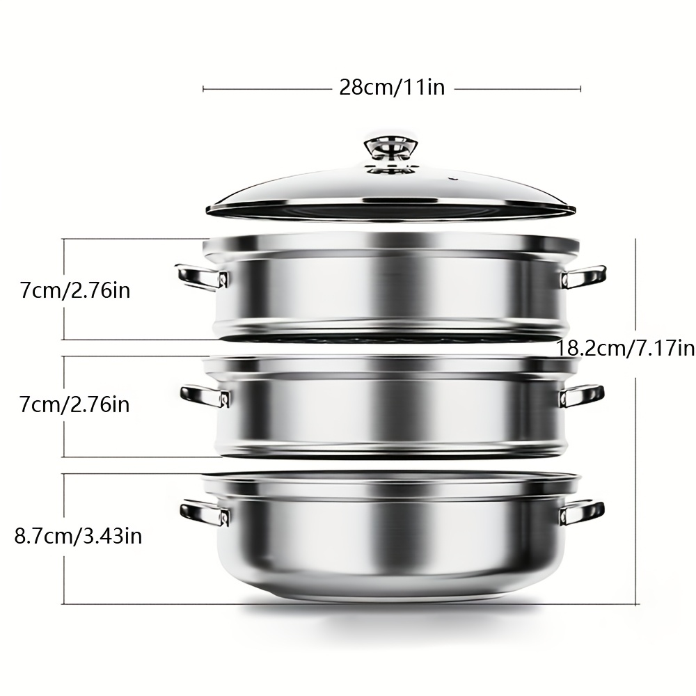 TEMU 뚜껑 포함 튼튼한 3단 스테인리스 스틸 찜기 - 410 등급 두꺼운 재질, 2/3단 디자인, 간편한 세척 및 내구성, 가정, 레스토랑, 케이터링용 - 상업용 주방, 레스토랑 장비, 다용도 조리 기구, 레스토랑 주인