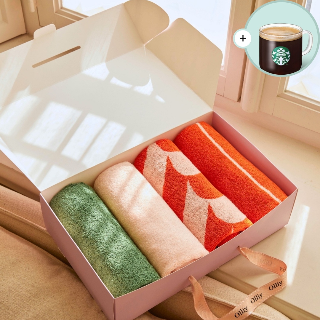 커피쿠폰 [8P/선물포장] 국내생산 뱀부 프리미엄 디자인 호텔수건 4color