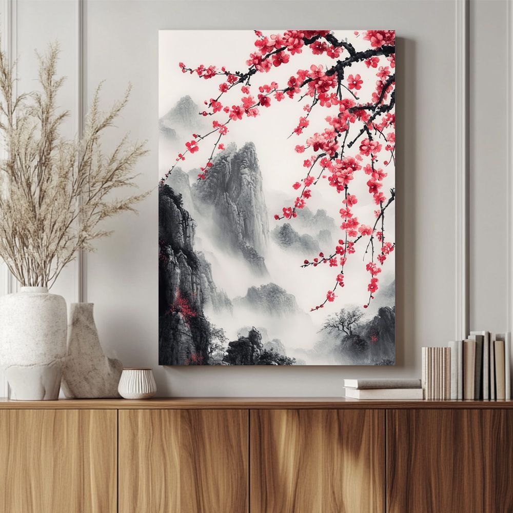 풍수 돈들어오는 동양화 액자 _활짝 핀 자두 수묵화