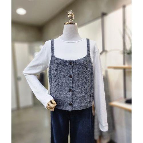 [에이치플러스몰]니트 인기 4컬러 끈 홀터넥 감성 나시 바닷가 댄스복