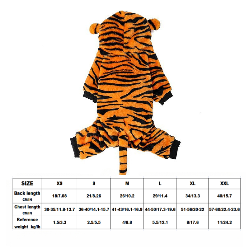 TEMU 펫 변신 코스튬 클래식 호랑이 패턴 펫 원피스 소프트 플리스 방풍 겨울용 따뜻한 고양이와 강아지를 위한 패셔너블한 귀여운 의상