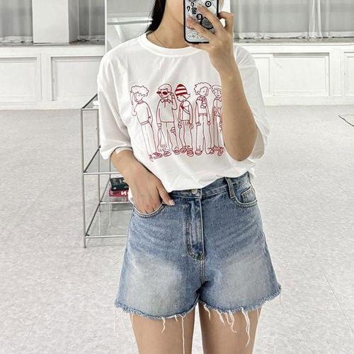 [에이치플러스몰]루즈핏 박시 캐릭터 반팔 숏 슬리브