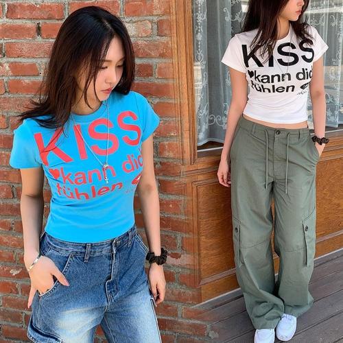 키스벨티 여성 반팔티 슬림쫀 레터링 티숙 면티숙 캐릭터 여름 WFJ2Y9W