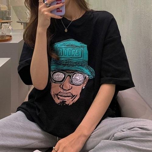 [엄지척]패션트렌드 캐릭터 프린트 루즈핏 디자인 반팔 티셔츠_19615064_667501