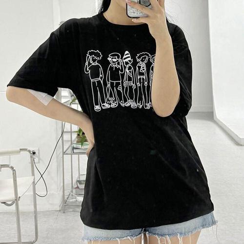 여성 일러스트 프린팅 루즈핏 반팔 티셔츠 캐릭터 WFIOKCK