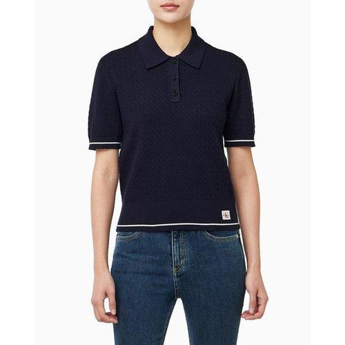 갤러리아_CK진[여]우븐라벨 크롭드 케이블 스웨터(47F320G-9EI)