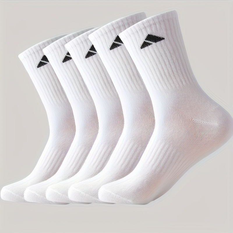 TEMU 남성용 미드컷 스포츠 양말 5켤레 - 흡습성 및 통기성, 스포츠 및 캐주얼웨어용, 블랙 앤 화이트, 세탁기 사용 가능 - 이상적인 크리스마스 선물
