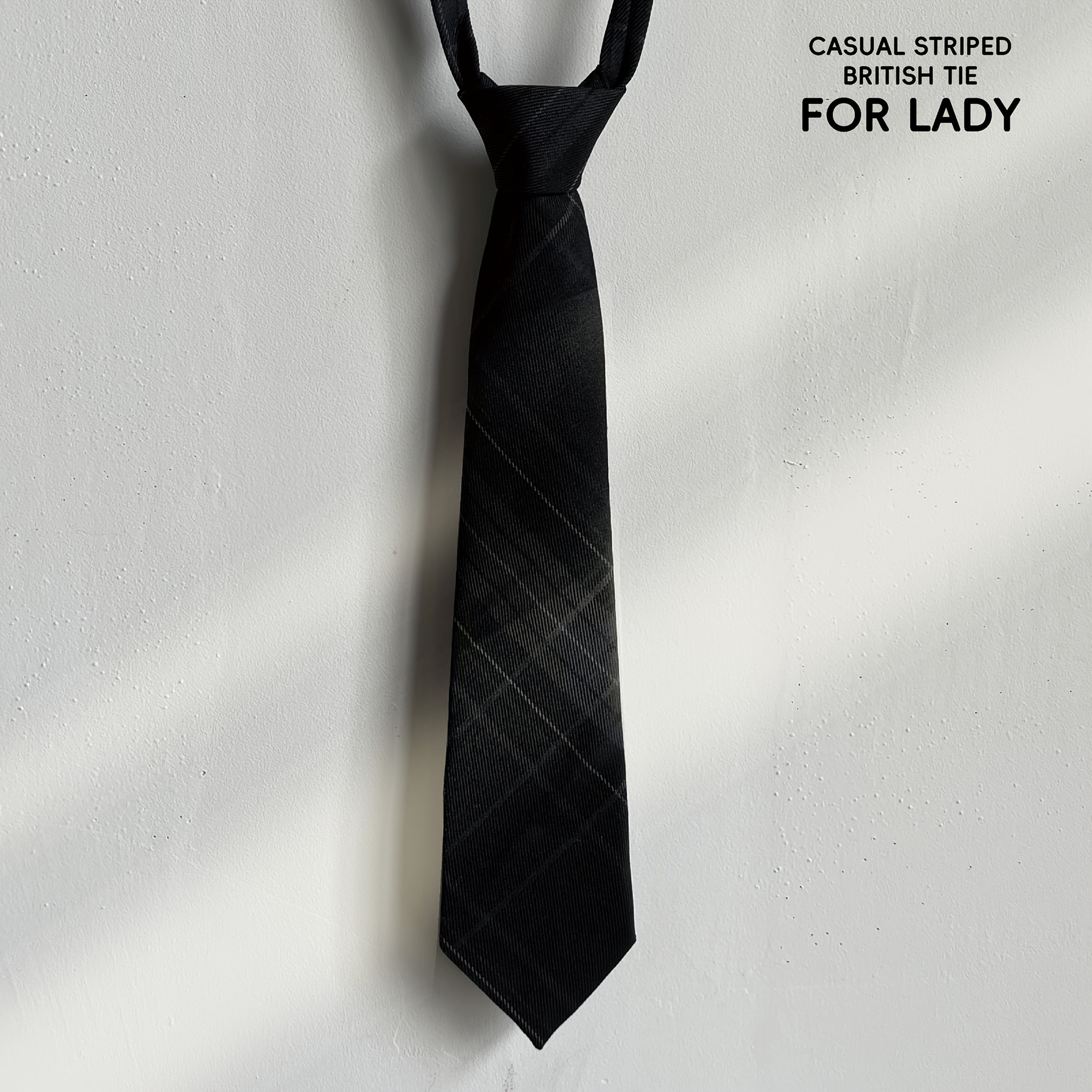TEMU 여성용 숏넥타이 - 13인치 차콜 블랙 가로 줄무늬 영국 스타일 넥타이, 학교, 비즈니스 & 데일리웨어용 숏 스타일 - 블라우스/의상에 다재다능 - 손세탁/건조 - 성숙한 프로페셔널 & 캐주얼 액세서리