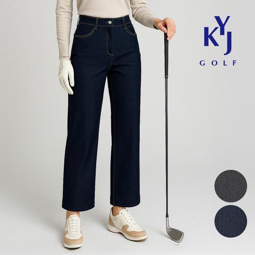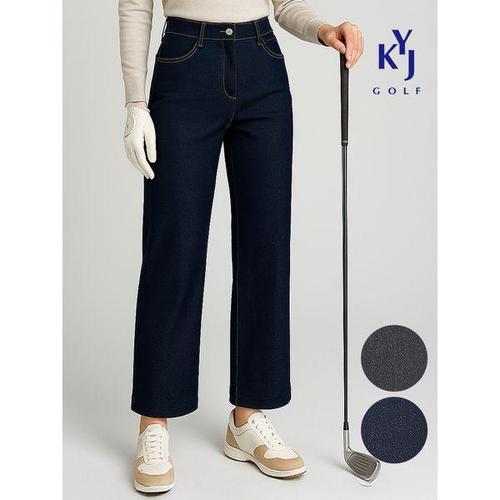 [김영주골프]봄가을 데님 스티치 뒷밴딩 스판 세미와이드핏 여성 골프 청바지 DPFLJN57