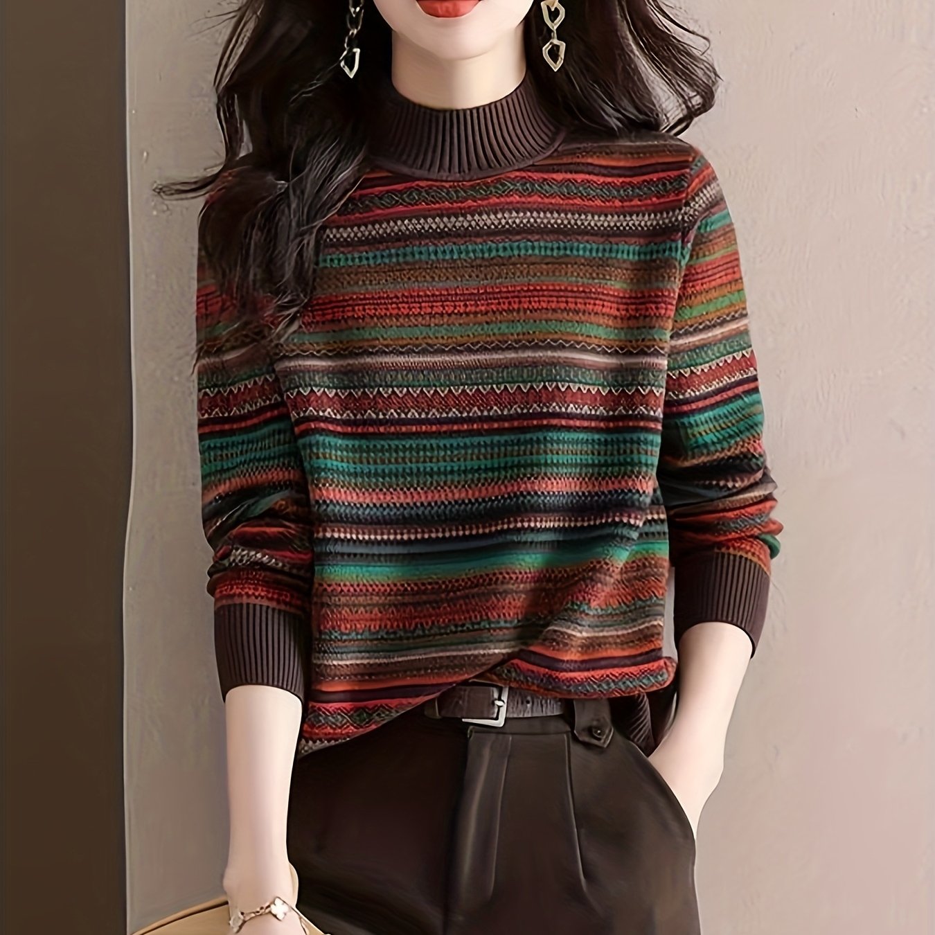 TEMU 여성용 우아한 하프 터틀넥 스웨터 - 멀티 컬러 (브라운/그린/베이지/토프) 두꺼운 겨울 풀오버, 긴 소매 레이어드 스타일 탑, 세탁기 사용 가능한 가을 & 겨울 땀 감소 스웨터 & 캐주얼 의상