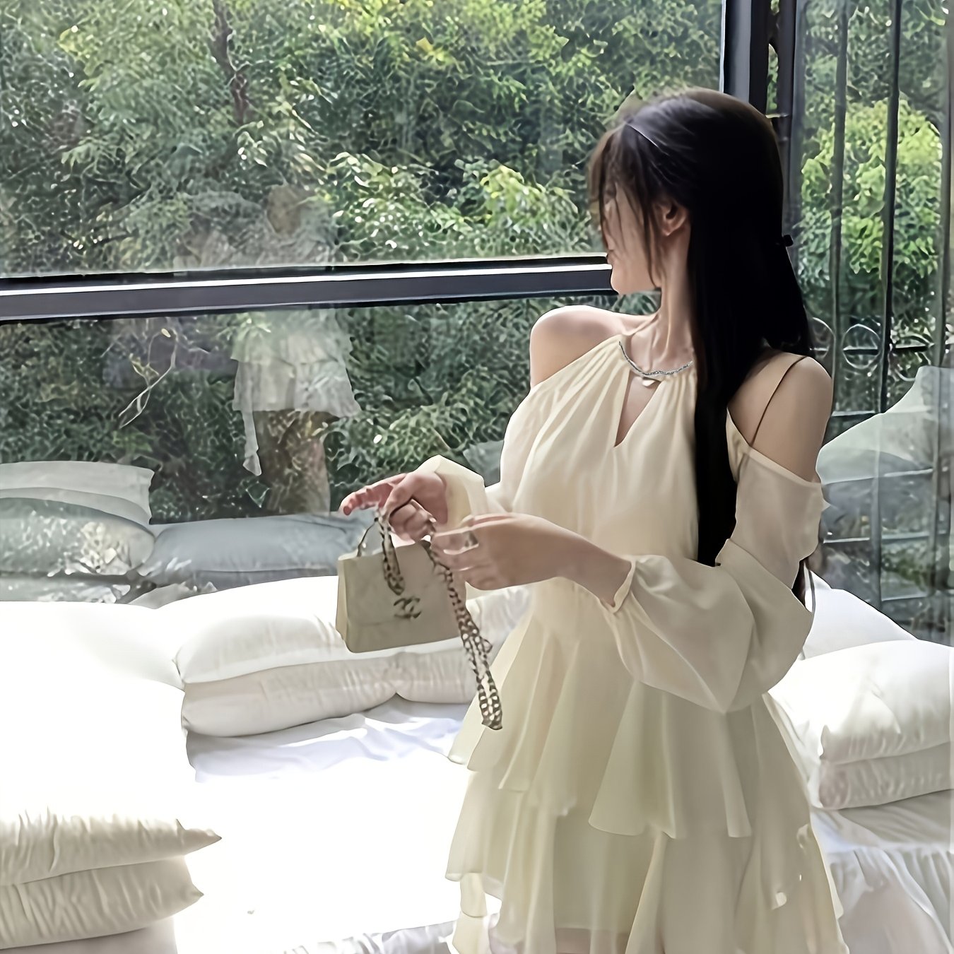 TEMU 여성용 봄/가을 스퀘어넥 슬림핏 롱 드레스, 우아한 레이어링 맥시 드레스