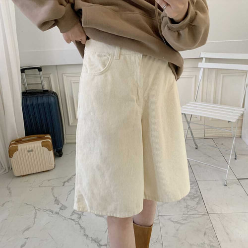[오노마] ONM 여성 허리밴딩 하이웨스트 코듀로이 반바지