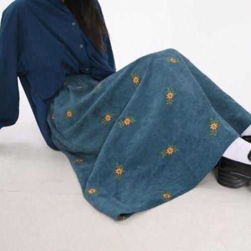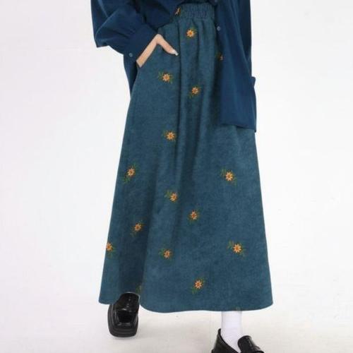 [신상오픈런]여성용 가을 겨울 따뜻한 코듀로이 플라워 롱 치마