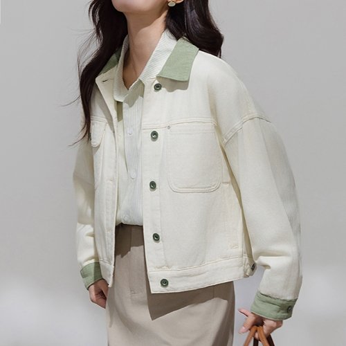 ★특가★[블랙퀸] 파스텔배색 베이지 데님 자켓 blk004606