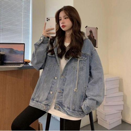 [다잇템]여자 코디 후디 탈부착 롱슬리브 진 자켓