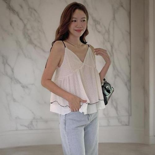 [다잇템]여성 SS 땡땡이 코르셋 하트네크 프릴 끈나시