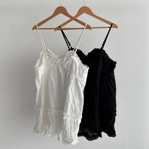 [다잇템]여성 덤블 SS 하트네크 코르셋 프릴 끈나시