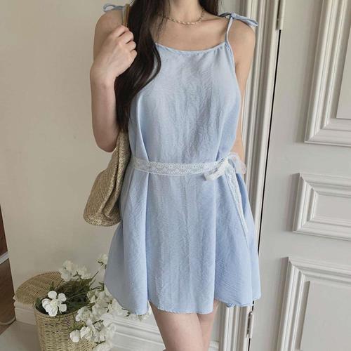 여자 스트랩 쁘띠 리본 레이스 코르셋 원피스