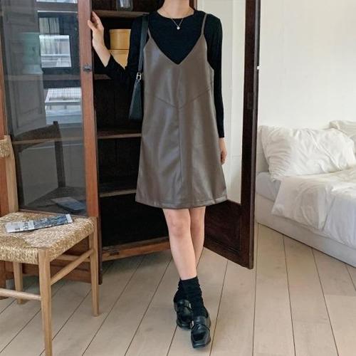 [다잇템][다잇템] 여자 무광레더 코르셋 FW 미니원피스 티셔츠 세트_18668046_588872