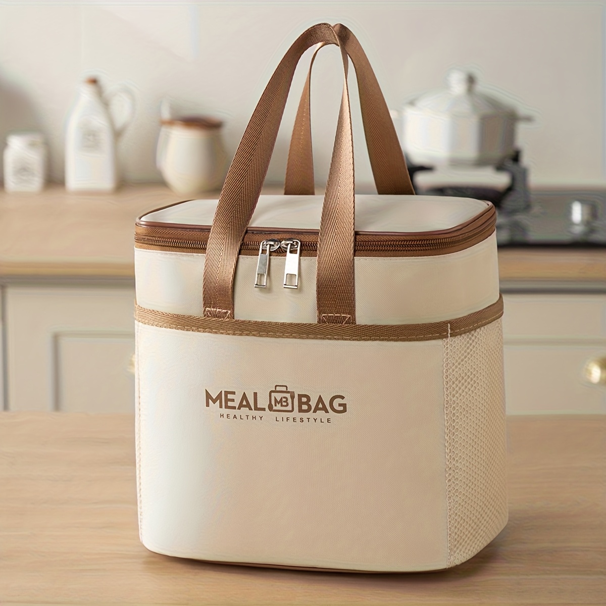 TEMU 휴대용 단열 도시락 가방 (어깨 스트랩 포함) - 튼튼한 옥스포드 천, 강화 핸들, 메시 포켓 사용, 학교, 사무실, 여행에 적합한 컴팩트한 사각 디자인 - 식품 접촉 금지, 손세탁만 가능